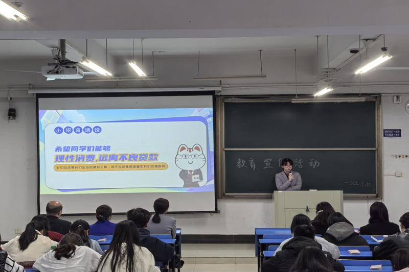 接着,她分享了四个大学生遭受网络金融诈骗的具体案例,向同学们介绍了金融产品的相关特性及潜在风险,详细解释了以贷养贷、过度消费、超前消费以及保本理财产品等常见的金融诈骗手段,并特别提醒广大消费者要增强契约精神,珍惜个人信用,合规使用信用卡,并依法理性维权。她强调,作为消费者的坚强后盾,银行业协会将始终坚守初心,积极履行职责,努力营造和谐健康的金融消费环境,以积极的文化力量推动金融业的高质量发展。