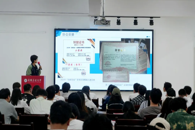 近日,安徽工业大学社团联合会开展会长大会暨社团风采展示答辩会,我院ERP企业模拟协会凭借出色表现,从众多社团中脱颖而出,荣获“2024-2025年度十佳社团”荣誉称号。