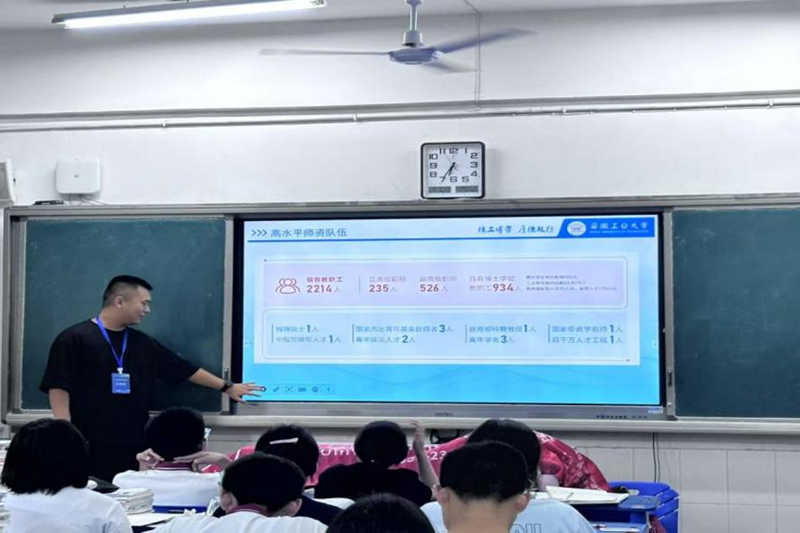 宣讲课堂上,团队成员徐俊睿同学以自身在安徽工业大学的求学经历为引,生动介绍学校积淀深厚的人文底蕴,详解特色学科优势,展现开放活跃的学习氛围,分析就业前景。同时,结合具体专业课程案例,剖析知识体系逻辑,分享竞赛、实习等实践机会获取方法,鼓励学弟学妹精准规划学业,善用资源平台助力成长。