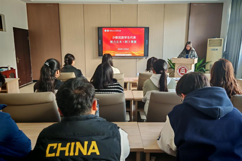 活动在和谐融洽的氛围中拉开帷幕。少数民族学生代表帕力旦木·阿卜莱提和汉族学生代表吴淑雅先后作了发言。他们结合自身在校的学习与生活经历,分享了对于民族团结的理解与感悟,他们的发言真挚动人,展现了商学院学子良好的精神风貌,引发了同学们的热烈讨论,同学们纷纷表示要铸牢中华民族共同体意识,各民族要像石榴籽一样紧紧的抱在一起。
